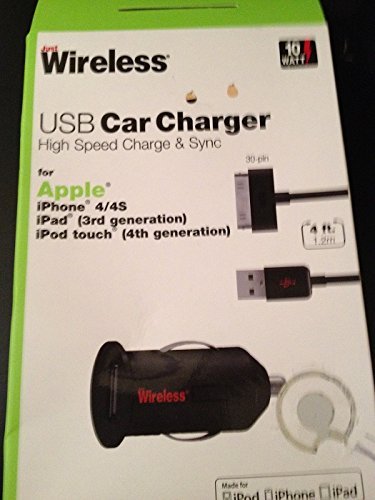 The JW USB Car Charger with 30 Pin connector offers you a remarkably thin and compact design that delivers 10 watts/ 2.1 amp of power for the fastest charging solution for your iPad, iPhone, and iPod in your car or USB power port Features: Ultra thin lightweight design 2.1 amp delivers 10 watts of intense power 4 foot / 1.2 meter cord Integrated circuit protection to safeguard your device Charges from your vehicles 12V or USB power port Sync apps, music, movies, data and more Includes USB charger/sync cable Rubberized soft touch finish For use with: iPhone 4S, iPhone 4, iPhone 3GS, iPhone 3, iPhone iPad 3rd generation, iPad 2, iPad iPod touch 2nd, 3rd and 4th generation iPod nano 4th, 5th and 6th generation