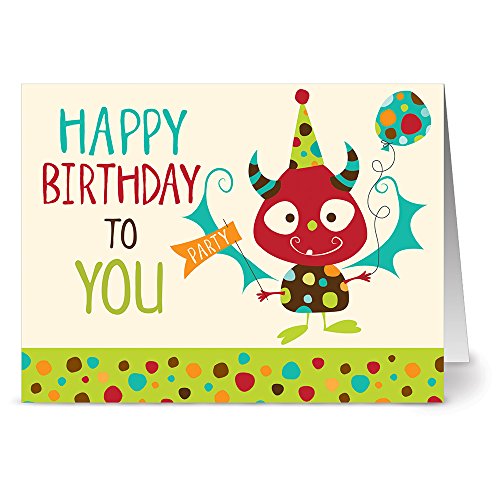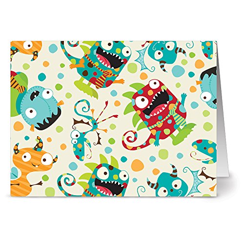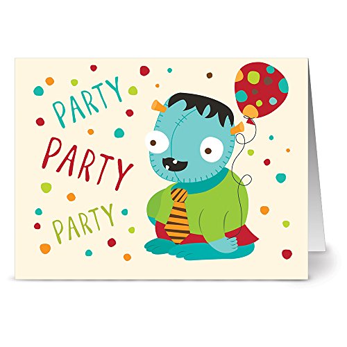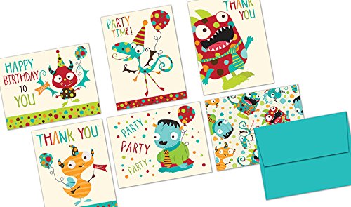 Monster Mash Birthday - 36 Birthday Note Cards - Blank Cards - Aqua Blue Ocean Envelopes Included