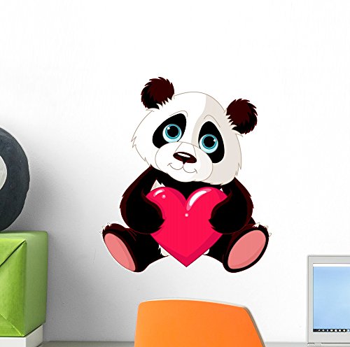 Wallmonkeys WM93808 Cute Panda with Heart Peel and Stick Wall Decals (12 in H x 11 in W)