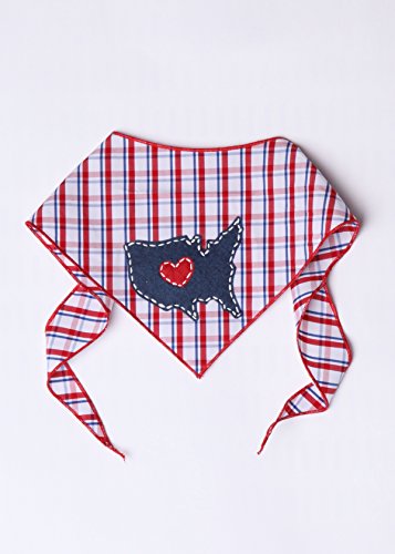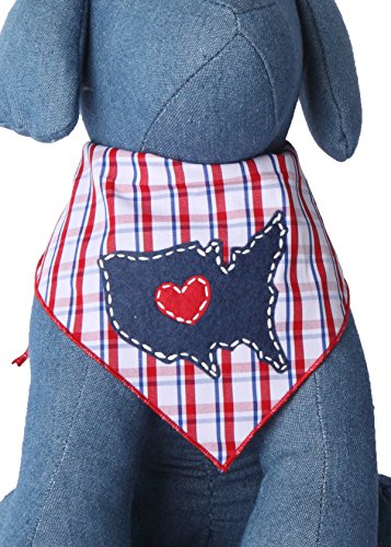 Product Description Designer handmade dog bandana with Patriotic themed felt appliques on 100% Cotton fabric. This product fits most small to medium sized dogs. Medium Size fits 8"-15" neck line. Large Size fits 16"-24" neck line. 0