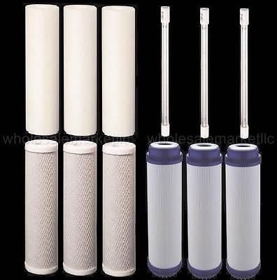 -. Feature : This is for 3 sets of size 2.5" x 9.75" replacement pre-post filters and 6W UV Replacement Bulbs that fit a standard Reverse Osmosis System or any Standard 10" Housing Unit. / The Sediment filter is the first filter of your water filtration unit. Sediment filters are used to remove particles such as sand, dirt, silt, and rust. To remove these particles it allows a better performance for the following Carbon Block or GAC filters. / Granulated Activated Carbon (GAC) filter adsorbs and removes bad taste and odors. Also a large variety of organic contaminants such as chlorine, pesticides, herbicides, insecticides, trihalomethanes, and many other chemicals. / Carbon Block filter. Removes chlorine, bad taste and odor, organic solvents and organic chemicals that contribute to bad taste and odor. / Ultra Violet Light. Kills harmful Bacteria, E Coli, Viruses Fungi, Algae most microorganisms including cryptosporidium and giardia, and many other contaminants.