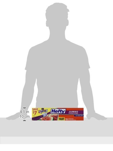 Hefty 2x Stronger 2.5 Gallon Jumbo Storage Bags, 15 Count (Pack of 2) Total 30 Bags