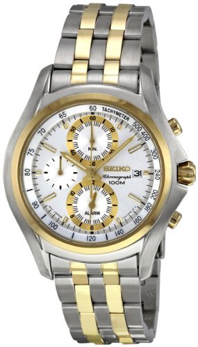 원본상품명: Mens Watch Seiko セイコ? SNAE82 Two Tone ステンレススチ?ル Alarm クロノグラフ Silver Dial 男性用 メンズ 腕時計 (?行輸入)