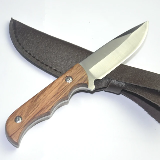 | [해외] 최고 군사 캠핑 고정 나이프, 440 블레이드 나무 핸들 작은 사냥 칼, 생존 칼 |