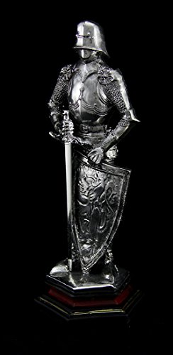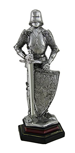 Resin Statues Medieval Knight In Armor Standing Holding Sword And Shield Statue 9 Inch 3.25 X 8.5 X 3.25 Inches Silver