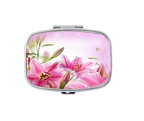 Pink lily flowers pill box/pill case--Rectangular pocket pill box/case---Two Compartments for Keeping Pill box/case