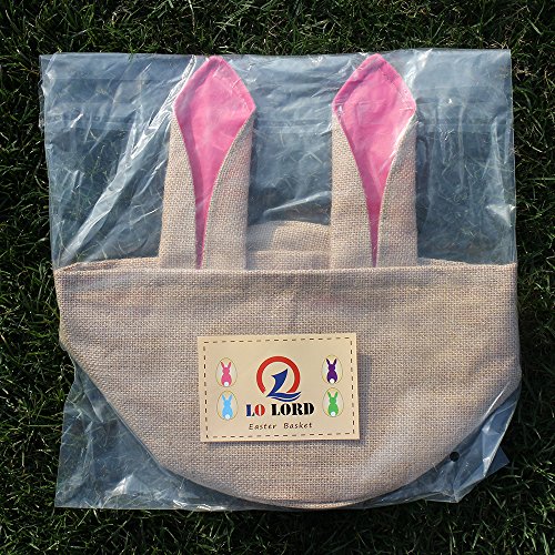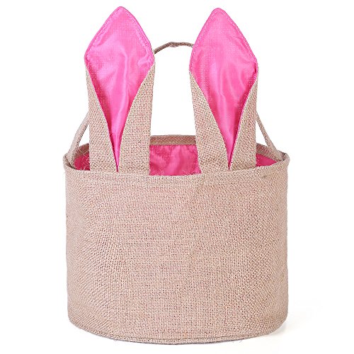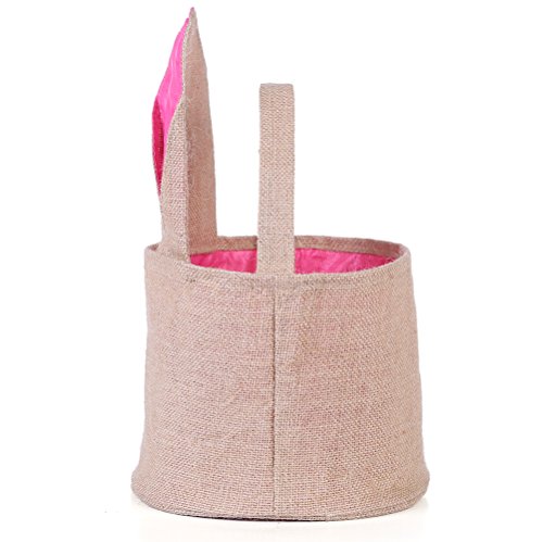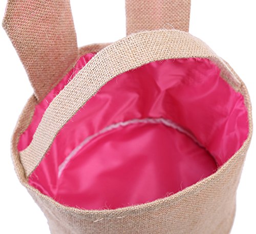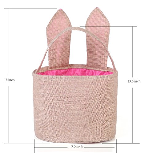 Easter Egg Basket for kids Bunny Burlap Bag to Carry Eggs Candy and Gifts (Pink)