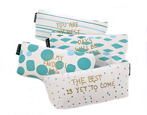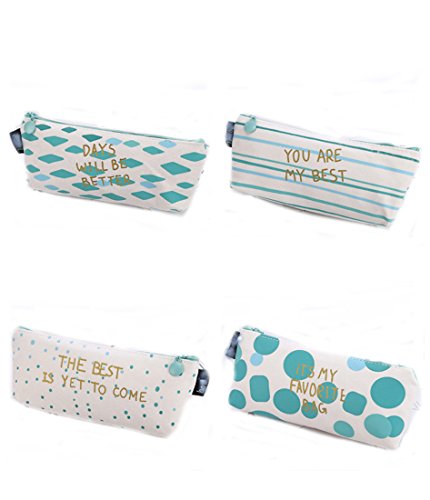 Flyusa 4 Pcs Mini Cute Canvas Zipper Pencil Case Pen Bag Pouch Stationary Case Makeup Cosmetic Bag
