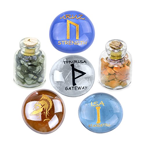 Ancient Runes Self Confidence Isa Uruz Thurisa Amulets Glass Stones Jasper Snowflake Obsidian Bottles Set