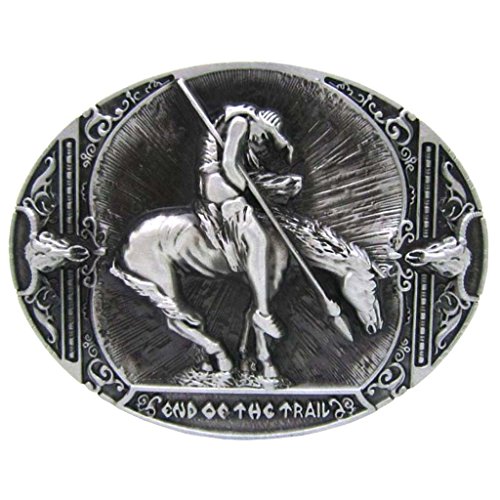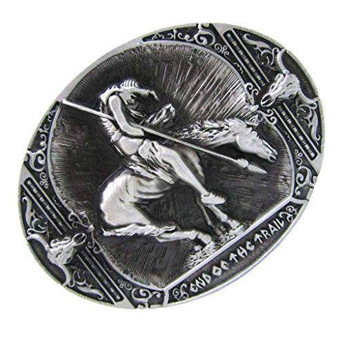 Description: - Antique Silver Tone Rodeo Indian Knight Horns Metal belt buckle - Vintage western cowboy cowgirl and American Country Style buckle for jeans leather belt - Classic, Cool and fashion Jeans Accessories for European and United States women and men - Material: Zinc Alloy, high quality finished and hardness, Buckle will fit any suitable Width up to 1.5"(40mm) belt - Oval shape Buckle measures: approx 10 x 7.3cm/3.93 x 2.87inch