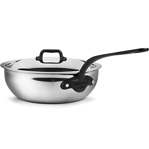 The Mauviel M'Cook Pro Stainless Steel Curved Splayed Saute Pan is designed for searing, browning or sauteing meats and vegetables. The Mauviel M'Cook Pro Stainless Steel collection offers professionals and household cooks the highest culinary technology. The 5 multi-layers include 18/10 stainless steel with aluminum core. This combination will assure perfect uniform heat conductivity, which saves on cooking time and energy. The handles are made from cast stainless steel with an iron electroplated finish. Mauviel M'Cook Pro Stainless Steel delivers results for the most demanding cook, with the greatest pleasure. Made in France with a lifetime warranty.Feature
