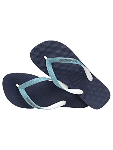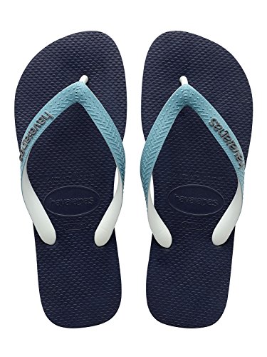 Studio : Havaianas Publisher : Havaianas Binding : Apparel Product Description Havaianas offers the Top Mix Flip Flops in Navy Blue/Mineral Blue colour, featuring logos on the straps. Made from rubber, this pair of flip flops also sport traditional Y-shaped straps. 0