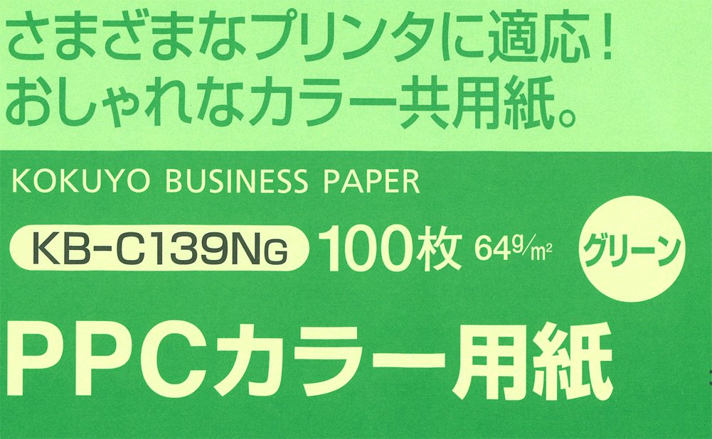 A4 100 sheets KB-C139NG Kokuyo PPC paper color paper both FSC-certified green (japan import)