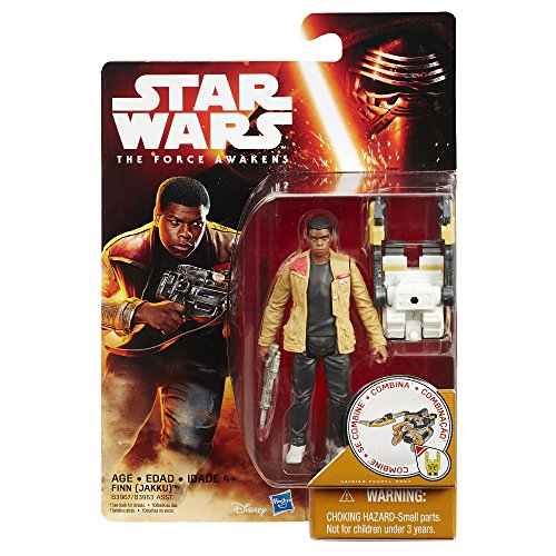 -. Binding : Toy -. Brand : Star Wars -. Color : Black,Golden Brown,Skin - Dark -. EAN : 7706683100176 -. Feature : Recreate adventures and scenes from the Star Wars Universe / Finn (Jakku)'s tank combines with weapons from First Order Flametrooper and Constable Zuvio packs to build a larger, even more powerful weapon! (each pack sold separately) / Comes with 2 accessories / Includes figure and 2 accessories. -. IsAdultProduct : 0 -. Label : Hasbro -. Manufacturer : Hasbro -. Model : B3967AS0 -. MPN : B3967AS0 -. PackageQuantity : 1 -. PartNumber : B3967AS0 -. ProductGroup : Toy -. ProductTypeName : TOYS_AND_GAMES -. Publisher : Hasbro -. ReleaseDate : 2015-09-03 -. Size : Standard -. Studio : Hasbro -. Title : Star Wars The Force Awakens 3.75-Inch Figure Desert Mission Finn (Jakku) -. UPC : 630509348527 -. Warranty : No Warranty