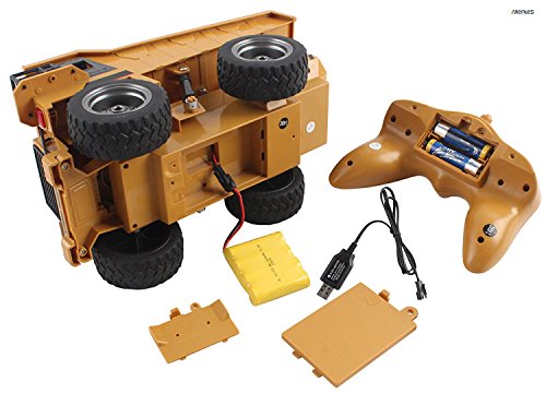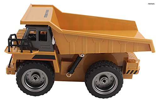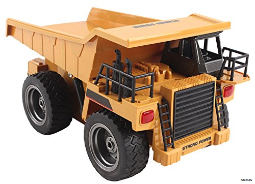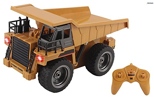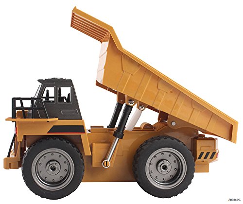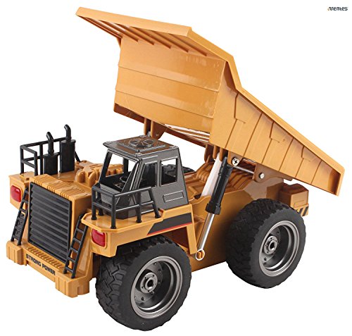 Memtes 6 Channel Full Functional Remote Control Dump Truck Construction Toy, Metal Back, with Lights and Sounds he Memtes 2.4GHz 6 channel full functional remote control dump truck toy moves forward, backward, right left, back loader can move up and down, flashing lights and high simulation sound effect. the dump truck is made of high quality material with stronger and more stable frequency and signal doesn't interfere with other players, this dump truck will give you hours of fun and entertainment
