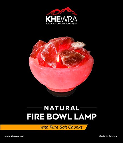 KHEWRA Pink Crystal Himalayan Salt Fire Bowl Lamp with Pure Salt Chunks on Wooden Base, 6.5 x 6.5 x 6.5 - Inch, 9 - 10 lbs