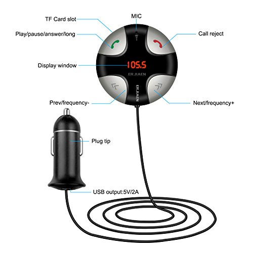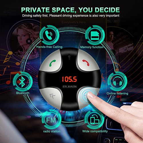 Broad Compatibility: Erjiaen 29B Bluetooth FM Transmitter with detachable magnetic base can work with iPhone,Android, Blackberry & Windows smart phone and any other bluetooth enabled devices. Its compact design is ideal fit in any vehicle.You can use it to play spotify and map navigation. Any other Popular music software, or E-book, drama, fiction, cross talk. Any of the Sounding APP software.