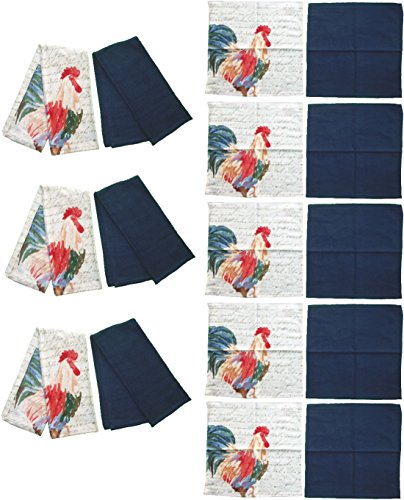 -. Feature : 5 rooster dish cloths 12 x 12 inches / 5 blue dish cloths 12 x 12 inches / 3 rooster dish towels 16 x 28 inches / 3 blue dish towels 16 x 28 inches / 100% cotton