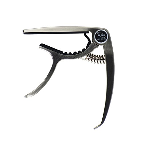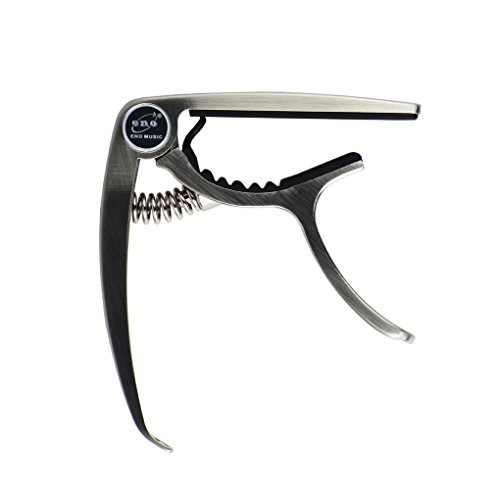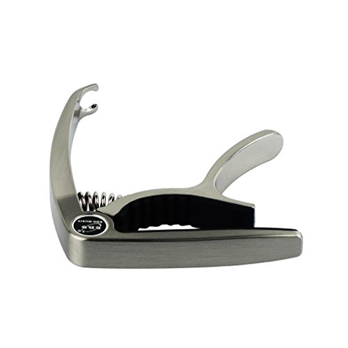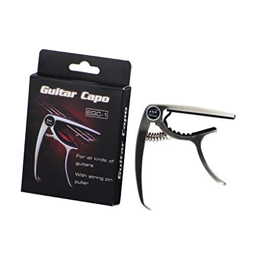 Product Description Feature:* The capo has a great performance for all kind of guitar,can clamp firmly onto most fretboards without buzz or loss of tuning.* With smooth surface and ergonomic handle,it is made of zinc alloy, lightweight but durable.* Strong spring is made of stainless steel,with great acid resistance,will help hold all of the strings down.* Soft silicone padding helps to protect the strings and fretboard without compromising on the quality of pitch and tone.* Easy to use,quickly and easily released and repositioned without disturbing the tuning.Can be repositioned with just one hand.* There is a string pin puller at the end of the handle, which can help you to remove string pins without making damage to your guitar.Specification:Fits for all kind of electric, acoustic and classical guitarMaterial: Handle is made of high quality zinc alloy, with soft silicone padding to protect your guitar perfectly.Color: NickelPackage include:1 x Packaged Guitar Capo 0