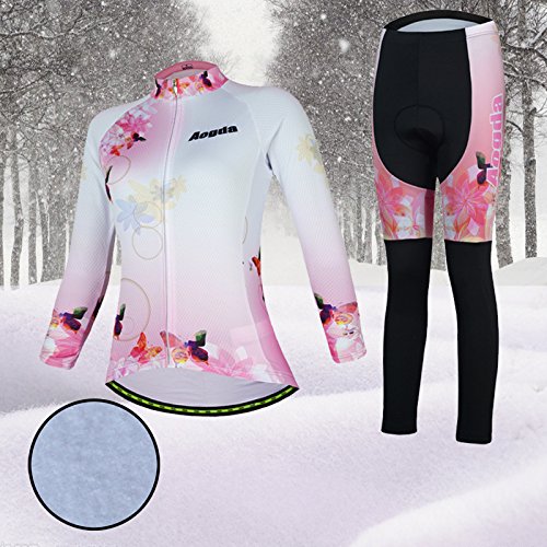 2017 Wosawe Women's Cycling Jersey Girl Long Sleeve Cycle Racing Shirt Bicycle Bike Sportwear Clothing D403 (b Set fleeces 02, 2XL)