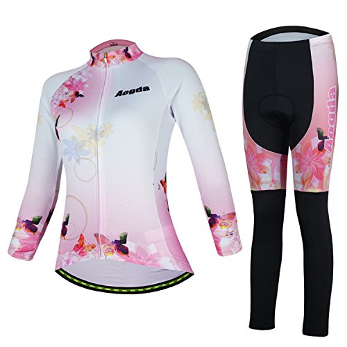 2017 Wosawe Women's Cycling Jersey Girl Long Sleeve Cycle Racing Shirt Bicycle Bike Sportwear Clothing D403 (b Set fleeces 01, S)