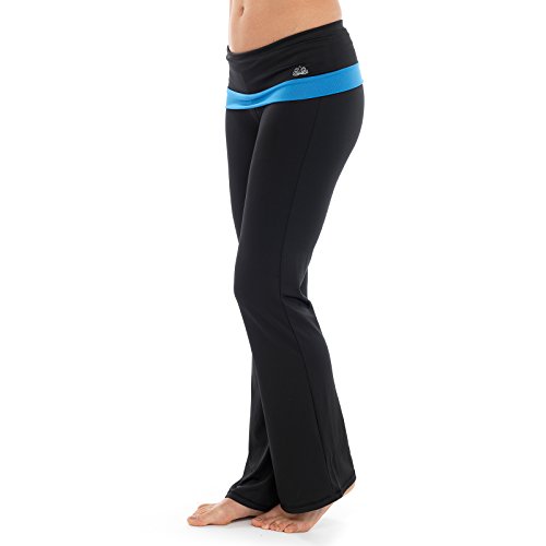 Ladies Full Length Fitness Sports Boot Cut Pants Blue Trim