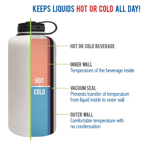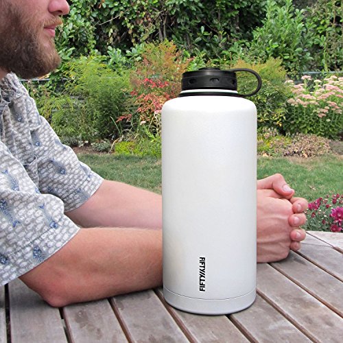 Fifty/Fifty White Vacuum-Insulated Stainless Steel Bottle with Wide Mouth - 64 oz. Capacity