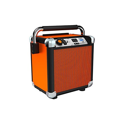 -. Feature : Streams music wirelessly from any Bluetooth device / (2) AC power outlets for powering lights, tools, and more / Powerful 50-watt speaker system provides room-filling sound and full bass / Includes 12V input jack and cables to power or charge unit from your car / Digital AM/FM radio with 6 preset buttons and flexible rubber antenna
