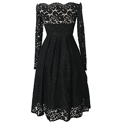 Yunicus Womens 1950's Vintage Floral Lace Retro Party Cocktail Formal Off Shoulder Swing Dress Black Large
