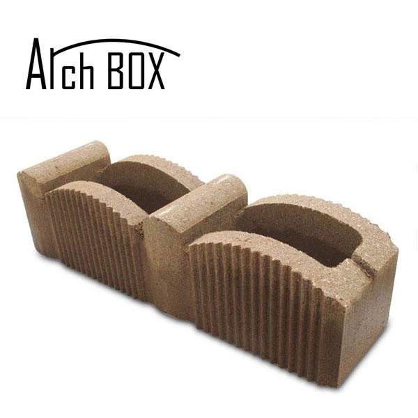 アーチ(円弧)でデザインされた、箱形の花壇ブロックです。内部は底の無い構造で手軽に施工でき、花壇や通路の土止め、縁きり、ガーデンライトの設置やラティスの装飾など幅広く利用できます。 |