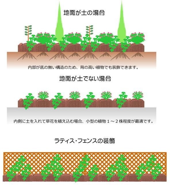 | アーチ(円弧)でデザインされた、箱形の花壇ブロックです。内部は底の無い構造で手軽に施工でき、花壇や通路の土止め、縁きり、ガーデンライトの設置やラティスの装飾など幅広く利用できます。 |