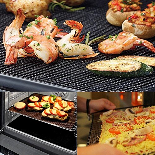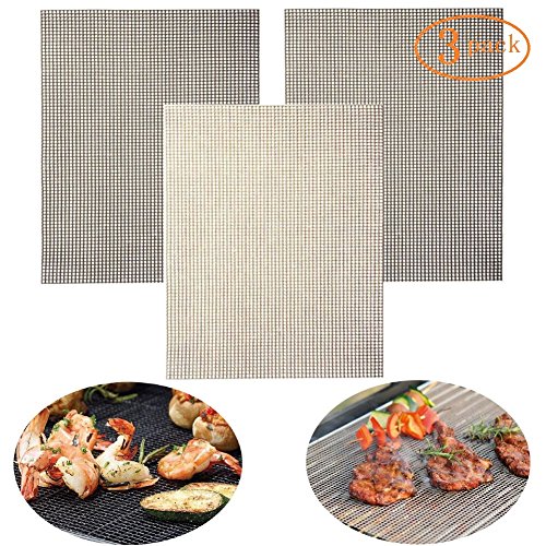 Best BBQ Grill Mat - (Set of 3) Extra Large Non-Stick Grill Mats - PFOA Free Grill Mesh Tray for Grilled Vegetables, Fish, Fajitas,Shrimp Vegetable Grill Basket