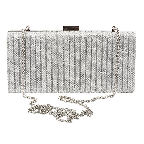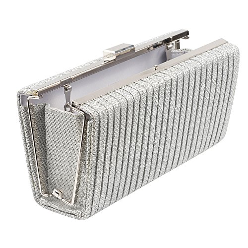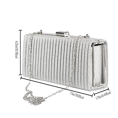 SHINY SILVER: This stunning purse is available in a shimmery silver color who goes flawlessly with any dress.