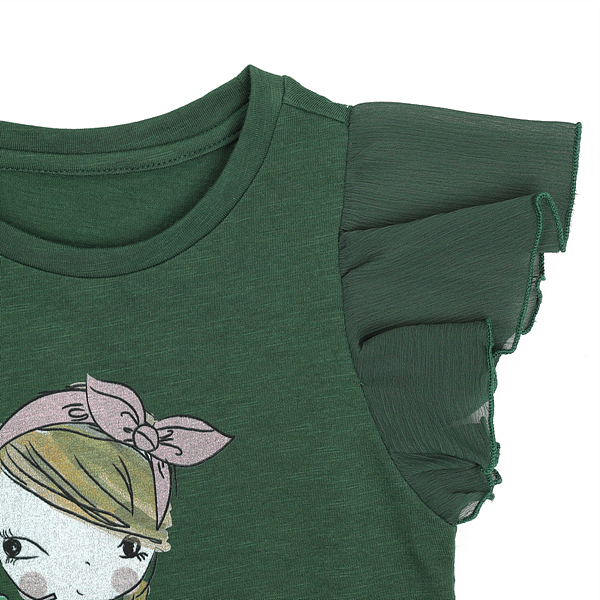 상세설명-세련된 그린컬러에 소녀나염프린트가 있어 귀여운 이미지 연출이 용이한 상품입니다.