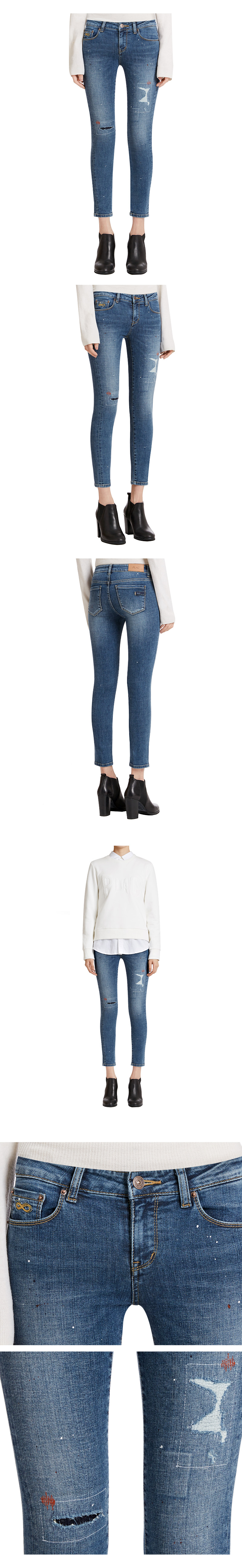 - 사방슬럽의 중간인디고 원단을 사용한 크롭스키니 - 양쪽의 짜집기와 패치 자국 디테일로 빈티지한 느낌과 동시에 화이트 페인팅으로 꽉차 보이는 룩킹을 나타냄 - 곳곳의 레드 스티치로 엣지를 살림 - 2%의 스판으로 착용감이 편안함 - 11OZ | |