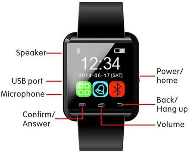 Bluetooth Smart Watch U8 Clock WristWatch U Sport Watches with Pedometer Message SMS Sync Call Reminder Remote Camera for Phones