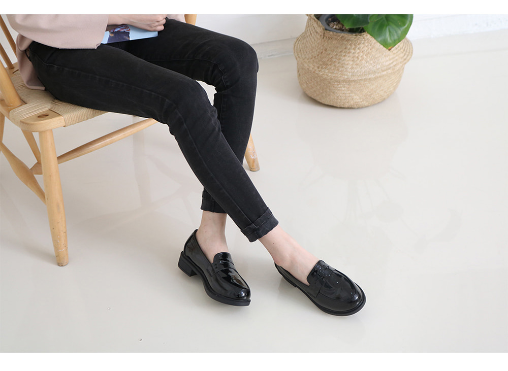 BAL-A02. 제칼[MD COMMENT]은은한 광택감이 스타일리쉬한 에나멜 소재로데일리하게 신어질 로퍼 소개합니다.군더더기없이 깔끔한 쉐잎에 페니디테일이 추가되어무드있게 포인트를 주며 가볍게 즐기기 좋은 슈즈인데요-너무 낮지도 않은 3cm의 굽높이로각선미를 은근히 살려주고 장시간 부담없이 착화 하실 수 있어신었을때 전혀 후회 없으실 거라 생각해요 XD베이직한 블랙 원컬러로 준비해두었으니 어서어서 초이스해보세요 ♥