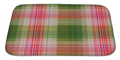 Gear New No Slip Microfiber Memory Foam Pink & Green Trendy Plaid Pattern Bath Rug Mat, 34" X 21"