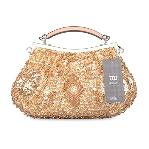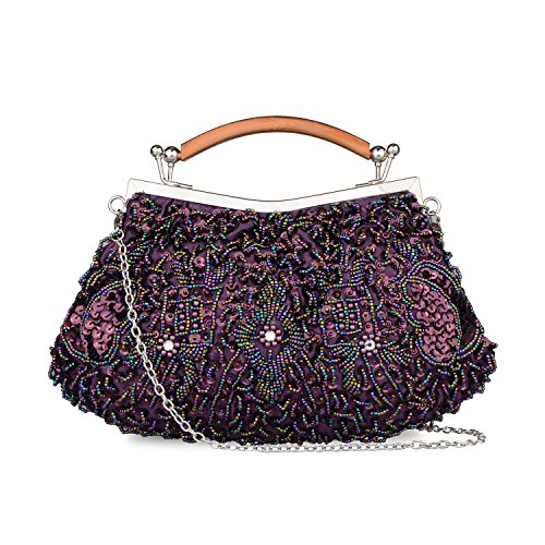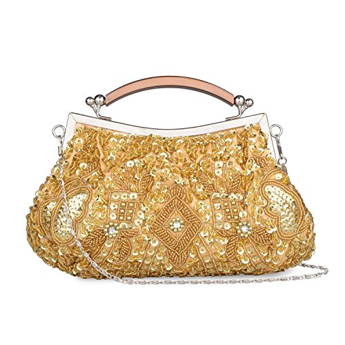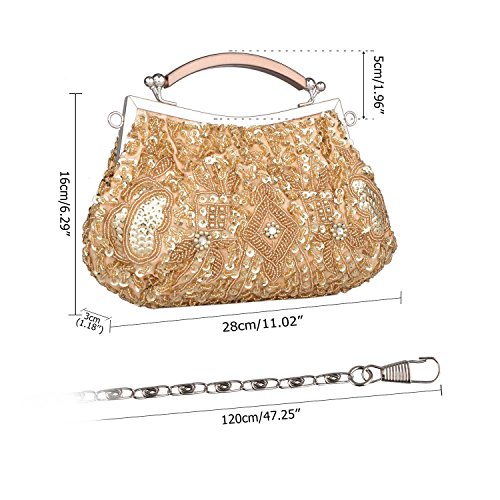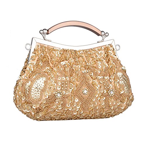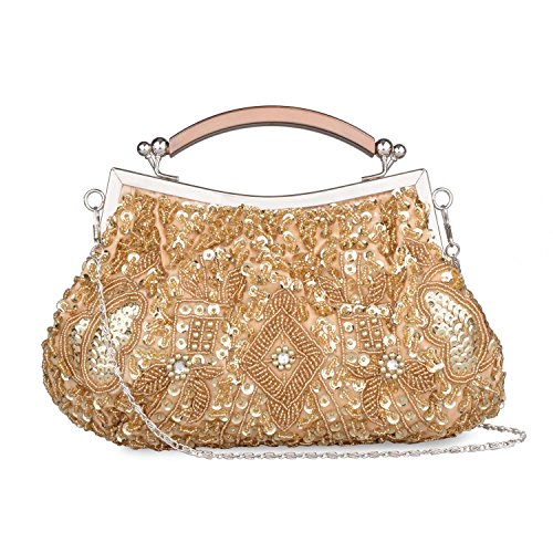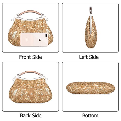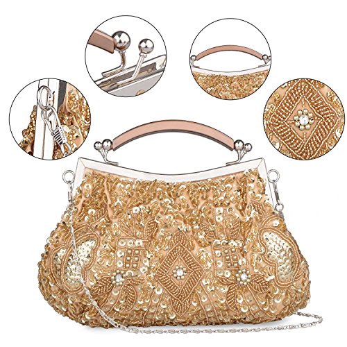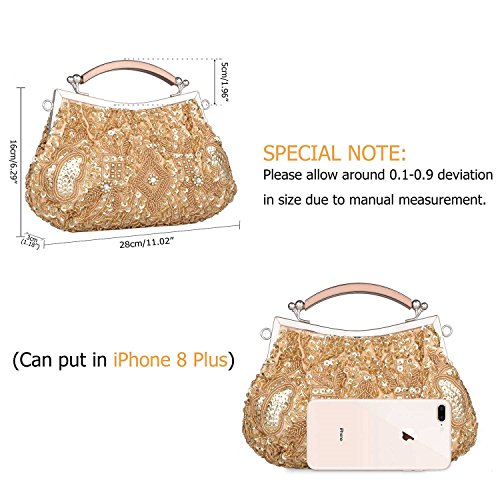 Kisschic Women's Vintage Style Beaded and Sequined Evening Bag Wedding Party Handbag Pearl Clutch Purse