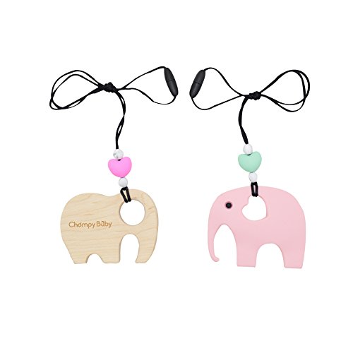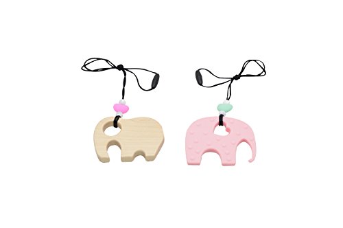 ChompyBaby 1 Hard + 1 Soft + Cushy Beads Elephants Teether Toy,Anti Flammatory, Drooling & Teething Pain Reduce -100% BPA Free-Pink