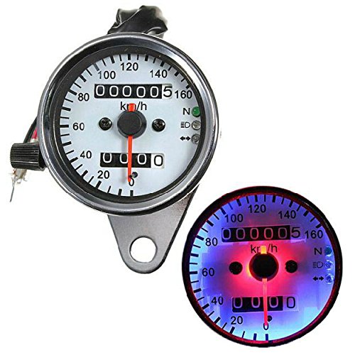 IZTOSS Motorcycle Dual Odometer Speedometer Gauge LED Backlight Signal Light chrome