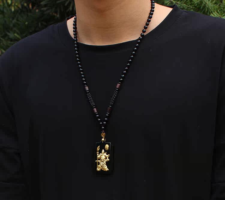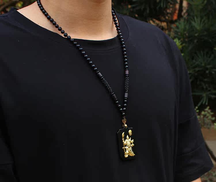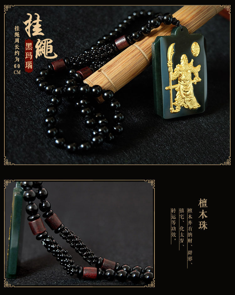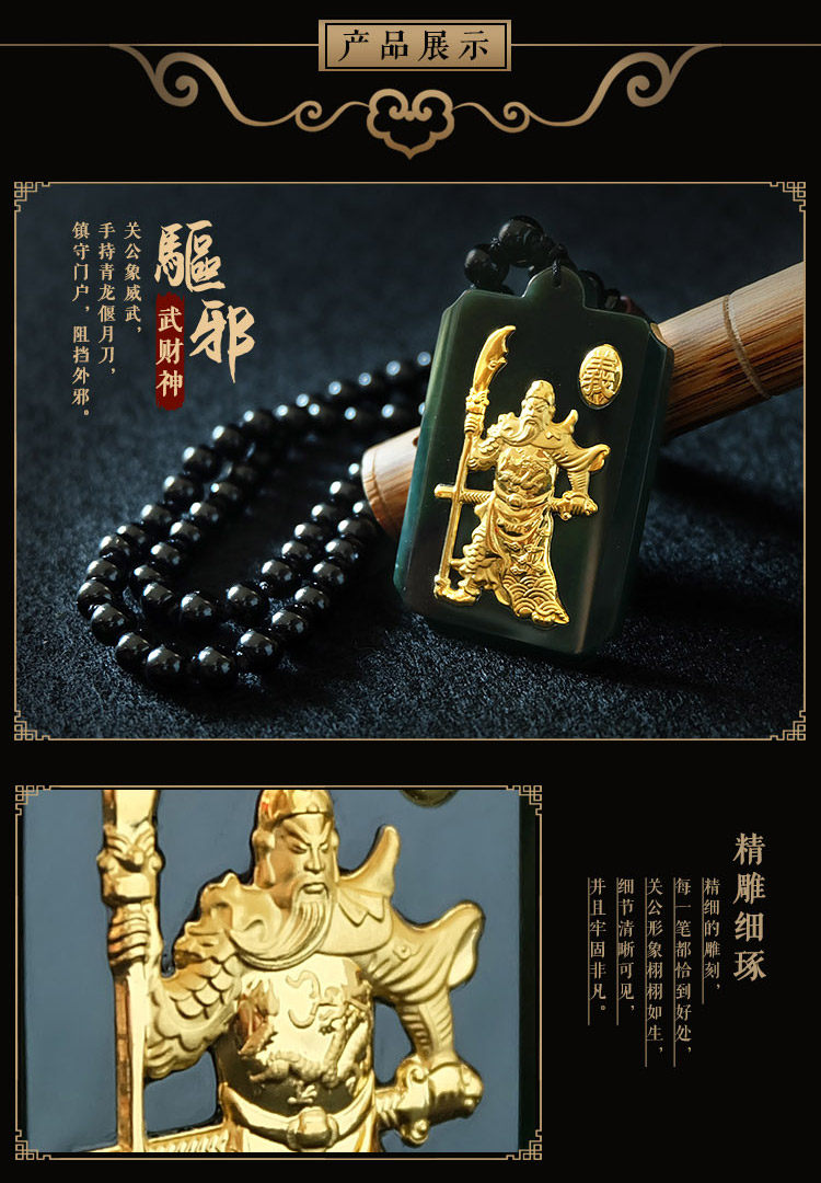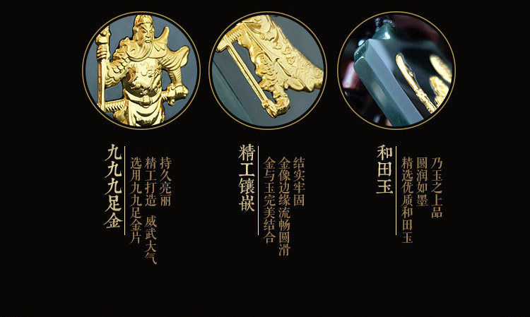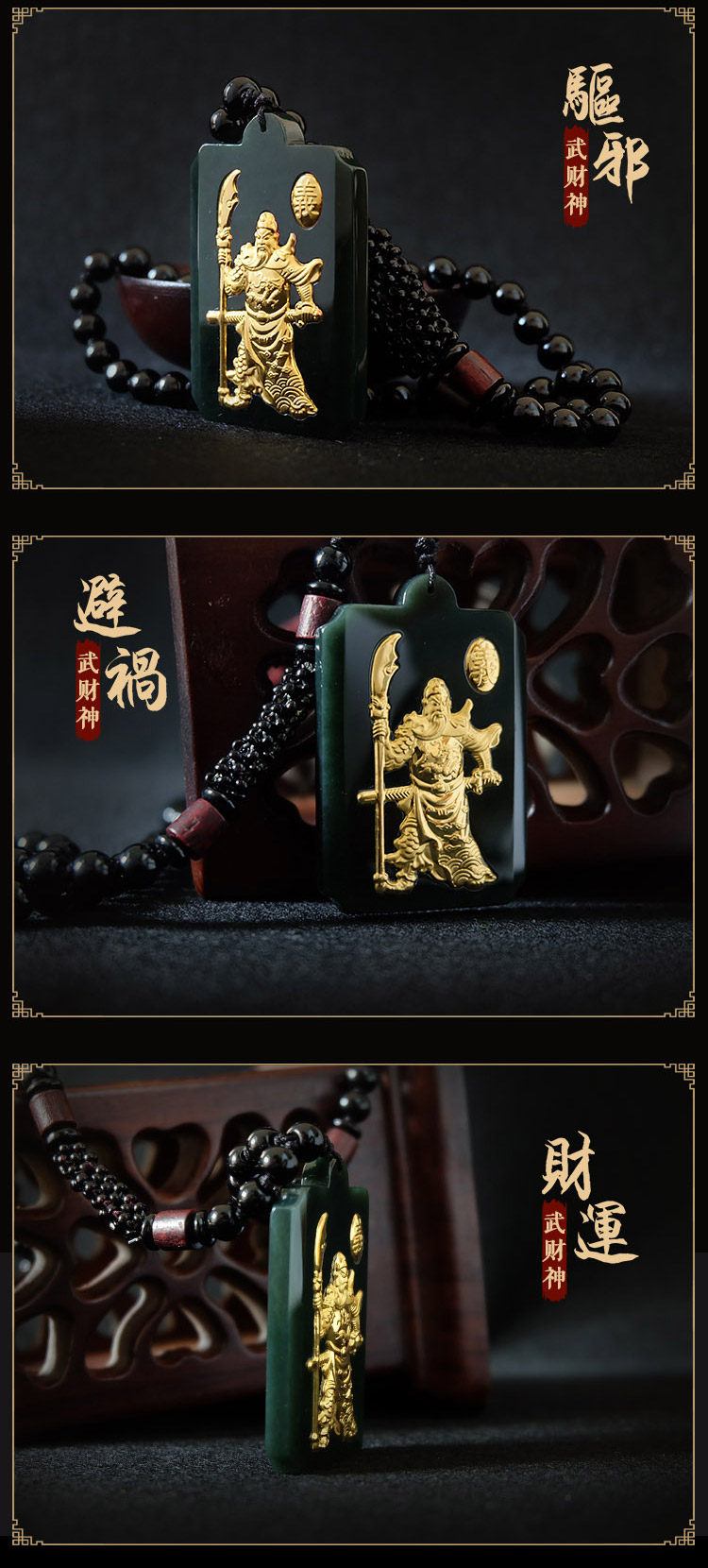 天然金镶玉关公吊坠男士镶嵌黄金关公吊坠和田玉墨玉 玉坠带证书