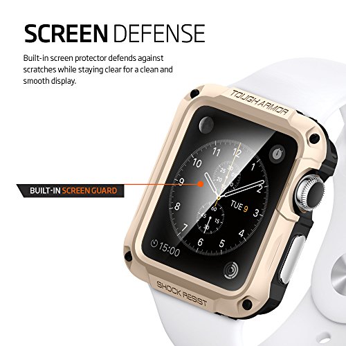 -. Title : Apple Watch Case, Spigen® [Built-In Screen Protector] Apple Watch 42mm Case Protective **NEW** [Tough Armor] EXTREME Protection / Front Built-In Screen Protector Cover / Red but Slim Dual Layer Protective Cover for Apple Watch (2015)