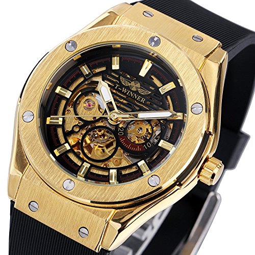 -. Title : Caluxe Sports Men's Automatic Mechanical Watches Silicone Strap 2017 Men's Skeleton Golden Wristwatches
