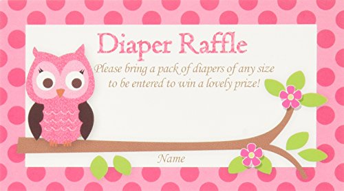 Pink Owl Printed Diaper Raffle Tickets Baby Shower Games (50-cards)