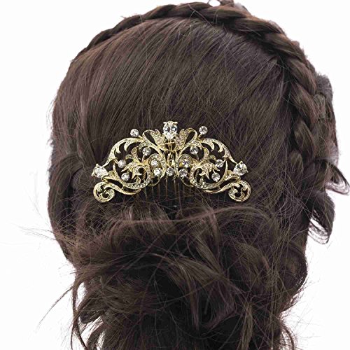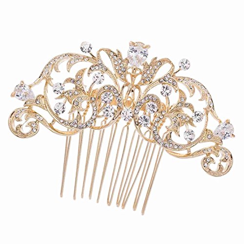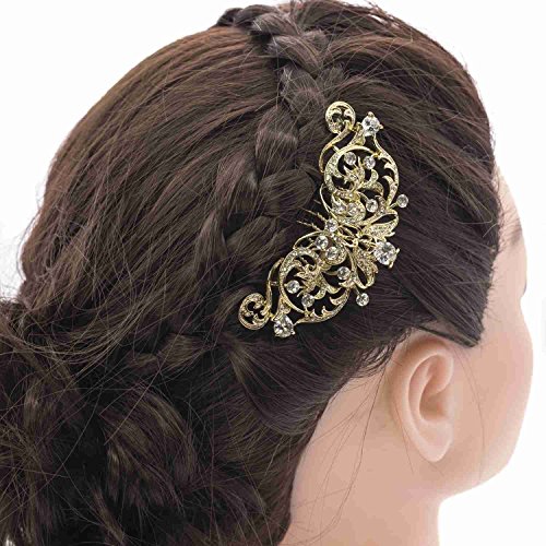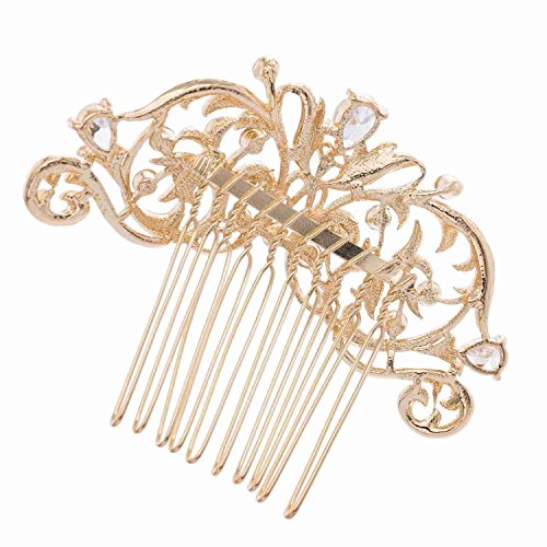 Gold CZ Rhinestone Hair Comb Pins Bridal Wedding Hair Accessories Jewelry 2253RGCL