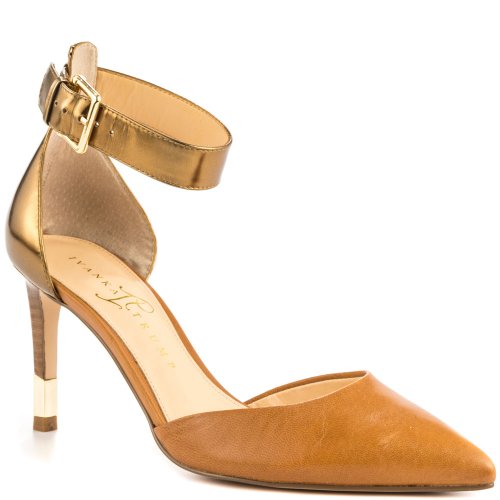 This classic, two-piece look is embellished with a hint of metallic shimmer at the heel.