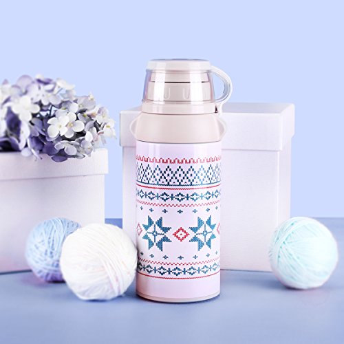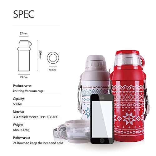 UPSTYLE Thermos Travel Mug Knitting Pattern Design Vacuum Insulated Stainless Steel Thermos Water Bottle Thermos Vacuum Flask Size 20 oz (580 ml), White