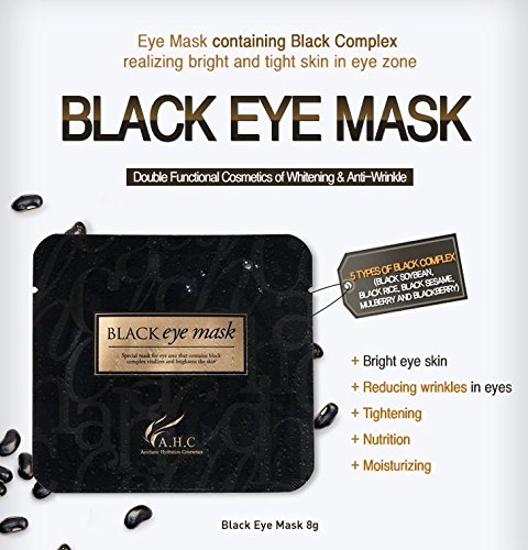 -. Binding : Misc. -. Brand : AHC Facial Mask -. EAN : 0804482412142 -. Feature : AHC Black Eye Mask 8g x 5 pcs in the Box / Eye Mask with the Double Functional Effects of Whitening and Anti-Wrinkle : Black Eye Mask contains Naicinamide and Adenosine, the functional ingredients of whitening and reducing wrinkles for skin in eye zone, and lightens up skin tone and enhances firmness of skin around eyes. / Moisturizing and Skin Protection with 5 Types of Black Complex : Anthocyanin is the ingredient rich in 5 types of black complex that includes black soybean, black rice, black sesame, mulberry. Black Eye Mask containing such ingredients can protect your fragile eye skin from hazardous substances and strengthen skin health. / Nutrition from OVer 10 Plant Ingredients Nurturing Skin : EGF and Hydrolysed Collagen, the ingredients similar to skin composition provide rich nutrition into skin and tighten up skin. Plant derived ingredients including Grapefruit, Licorice and Rosa Centifolia Flower Water always keep skin moisturized and transparent. / Soft Sheet Tightly Covers Entire Eye Skin : Black sheet gently, but tightly covers all over the eye zone, not just below eyes and delivers active ingredients effectively into the skin. -. IsAdultProduct : 0 -. Label : Carver Korea -. Manufacturer : Carver Korea -. MPN : BEM -. PackageQuantity : 1 -. PartNumber : BEM -. ProductGroup : Beauty -. ProductTypeName : BEAUTY -. Publisher : Carver Korea -. Studio : Carver Korea -. Title : AHC BLACK EYE MASK 8g x 5 PCS in the Box , Eye Mask Containing Black Complex Realizing Bright and Tight Skin in Eye Zone, Anti-Wrinkle & Whitening Effects -. UPC : 804482412142