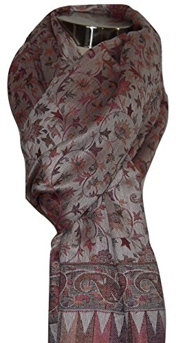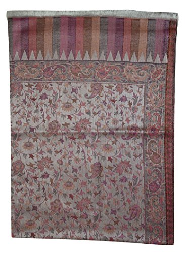 ITEM DESCRIPTION Handcrafted by artisans from Kashmir with Premium Quality Mulberry Silk and Pashmina Wool Modal fabric. This Scarf/Shawl is luxurious, super soft, warm, beautiful Multicolor Jamawar Weave Design in Paisley Floral . Very light weight and apt for any occasion. Never out of fashion. Dimensions: 78 Inches * 28 inches (Approximate) Maintenance: Dry Clean only.